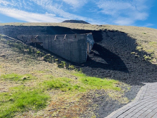 We weren’t going down the trail we came up, We deviated to the southern side of the volcano as our destination was Eldheimar – a museum dedicated to the Eldfell eruption. At the museum, there were a couple of partially excavated homes, and our guide dropped a bombshell. One of the homes belonged to his foourafi (grandfather)!! Very personal.