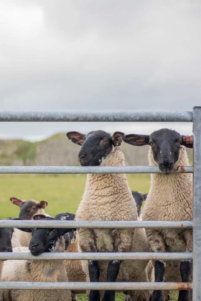There were gates and stiles to navigate and at about 3km we went over a stile that marked the high point, we were officially in the middle of the island. Occasionally we passed flocks of sheep and their cute little black headed lambs.