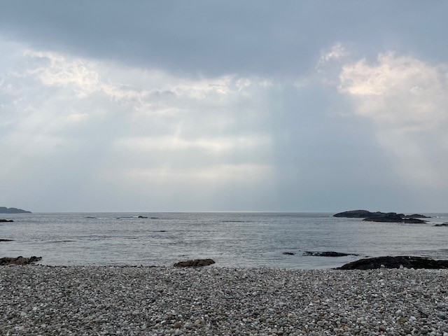 Downward we went, and soon we arrived at the ocean, wild, grey, and absolutely breathtaking. We had the beach to ourselves, and forget sand, it was pebbles, grass, and sheep poop. Our final 1.2km was a brisk walk down the main (only) road back toward the village and pier.