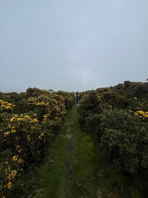 A lot of the landscape on the crest was gorse-laden, which was challenging to walk through. The tracks were wet and mucky underfoot, but thankfully I took my Merrell waterproof hiking shoes for just such an occasion. I had a decent backpack and took my wet weather gear. I still had to pick off quite a few gorse prickles at the end of the hike.