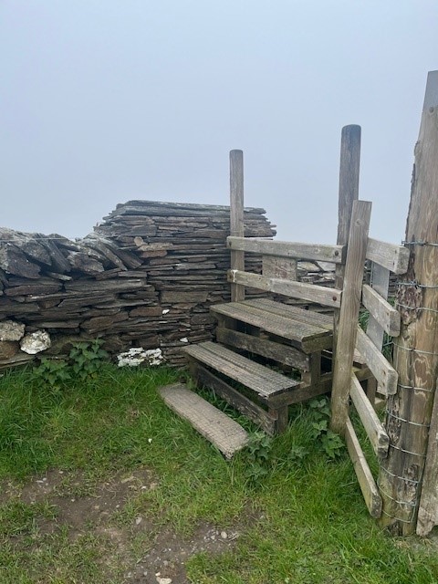 An abandoned house appearing in the mistLots of stiles to clamber overThe Chasms is a clifftop feature where you can see amazing birdlife, too dangerous for us on a misty morning…