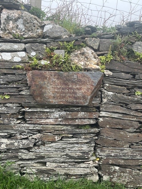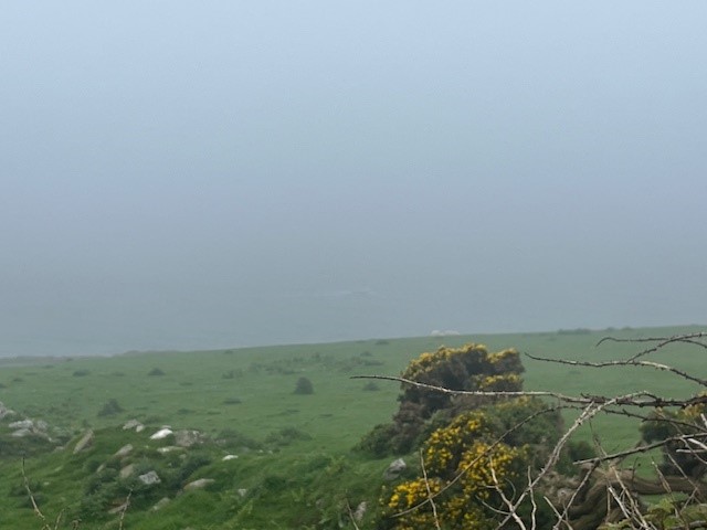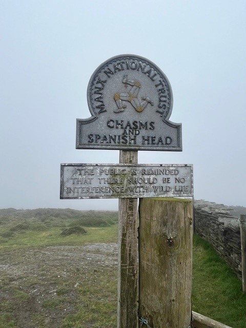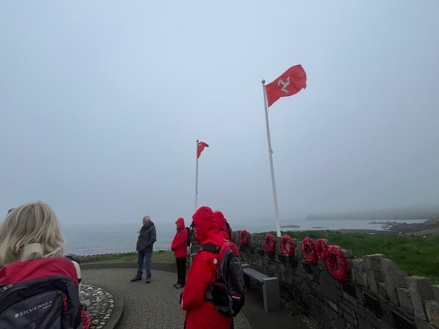 We started on the cliffs above Port St Mary beach. I was hoping for a clear day, but the sea mist was swirling, and although stunning, it meant that views might be out of the question. The beauty of a guide is that not only do you hike, but you also get a heaping of local stories and history – all very fascinating. Our first stop was a memorial for ships that took part in Operation Dynamo, the evacuation of Dunkirk in 1940. Three local ships assisting with evacuation were destroyed, with significant loss of life. It’s only fitting that the memorial sits on a clifftop overlooking the sea…