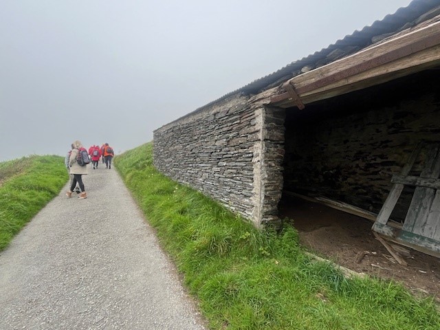 The highest point in the hike was about 4km in, a pretty amazing destination called Cregneash, a historical Manx village lovingly restored and running as an example of a 19th-century crofting community. Surprisingly, people still live here and little “private house” signs remind you not to barge on in. Good place for a quick coffee stop 🙂 Thankfully it was a short stop as the mist hadn’t cleared and it was quite chilly! Hiking meant moving and moving was warm.