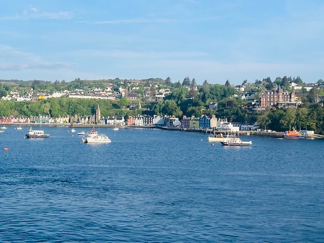 Welcome to Tobermory 🙂 We landed at the pier of this picture postcard village on the northeastern side of the Isle of Mull. It’s the capital of the island and is instantly recognisable for its brightly painted buildings that line the front of the fishing harbour. Tobermory comes from the Gaelic Tobar Mhoire or Mary’s Well, referring to a well nearby dedicated to the Virgin Mary.