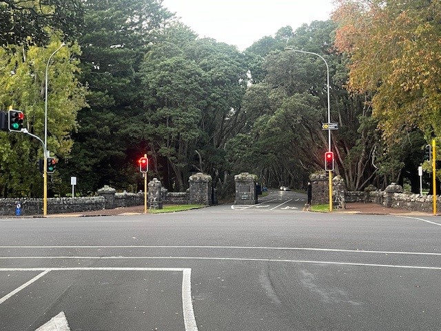 Winding through EpsomFirst park sign and side entranceOriginal Cornwall Park stones
