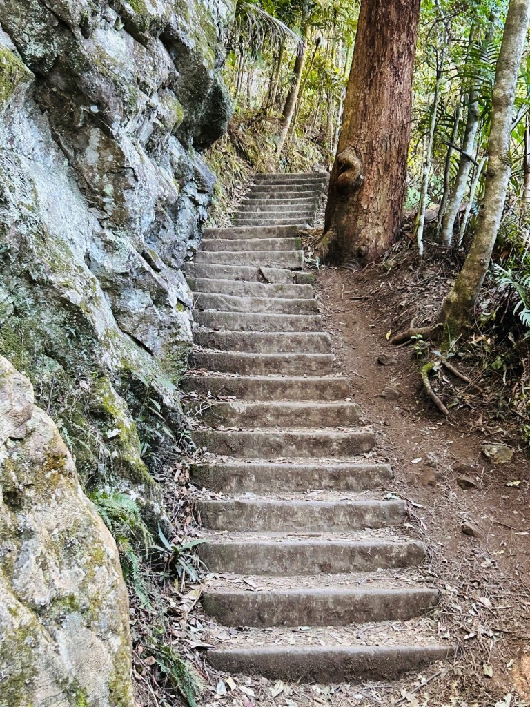 At 3.6 km you cross what I’m calling the Billy Goats Gruff Bridge, a sturdy little crossing that’s clearly built with care, like the rest of the trail. The path has been cleverly designed with mini steps and water runoff grooves to protect against erosion, especially with the recent rains.