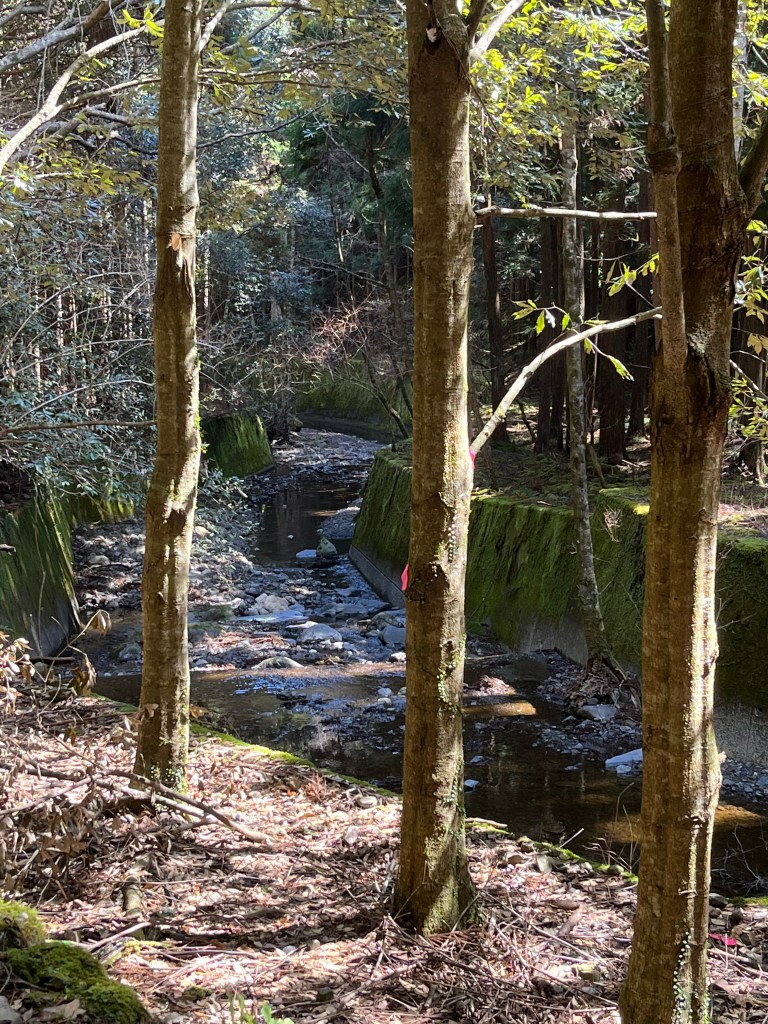 The pinnacle of the second leg was the Uwadawa-Jaya Teahouse Remains. We knew this because the elevation map told us! From here we figured it was largely a downhill romp to our ryokan in Chikatsuyu. We spent the downhill section traversing a river as we made our way down the valley. The foliage changed from upper forest to a more forest floor feel with the river providing a damper, more enclosed environment. It also grew a little dimmer. By now, time was ticking and as all good hikers know,, daylight disappears an hour earlier in the forest. We knew we had to be clear of the trail by 4.30pm at the latest.