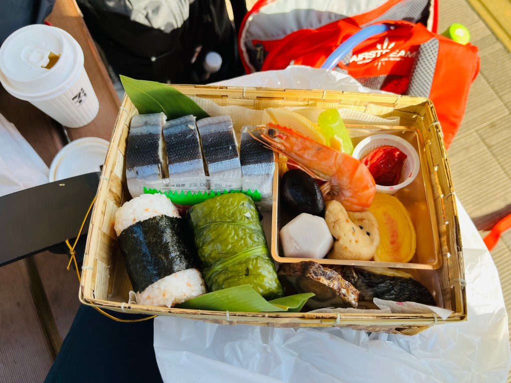 TB and I arrived in Tokyo on the Thursday evening. We gave ourselves 24 hours to have a speedy look at the city, then used Saturday as our transit day to get down to our jump point, Kii-Tanabe on the western side of the Kii Peninsula. After a dodgy overnight at a ‘unique’ BnB in Tanabe (more on that later) and a google interpreter assisted briefing from our Kumano Travel contact, we woke on Sunday morning, sorted our packs out, picked up our bento box lunch and caught the local bus for Takijiri. What a bento box!! While we waited for the bus, I had a little peek inside – magnificent! Only downside, it weighed about 2kg and with the hike we had in store for us, that did make a difference…