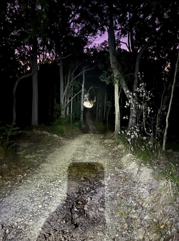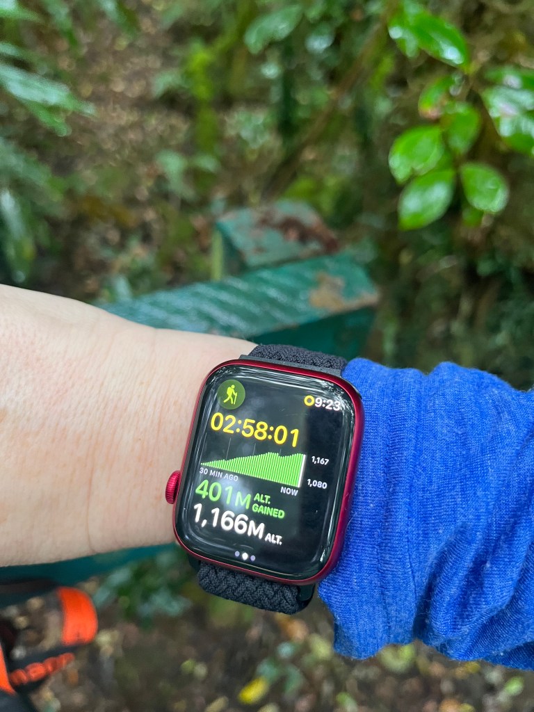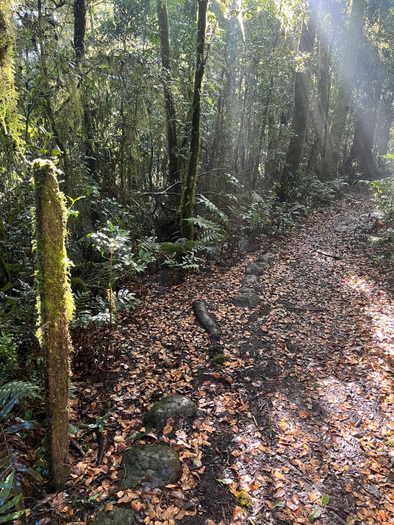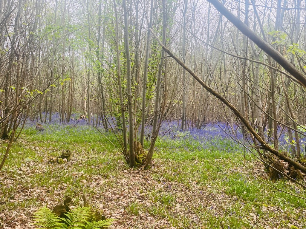 The temperature was cool, but not cold. I had on a long sleeved merino and a sleeveless puffer, and heading uphill I was starting to feel quite warm. Around the 3.5km mark I took a right hand turn and had an orchard on my left, and a bluebell forest on my right. Stunning.