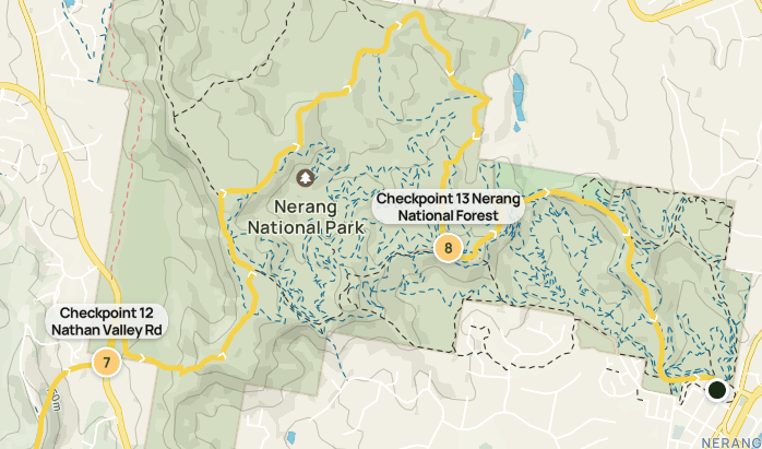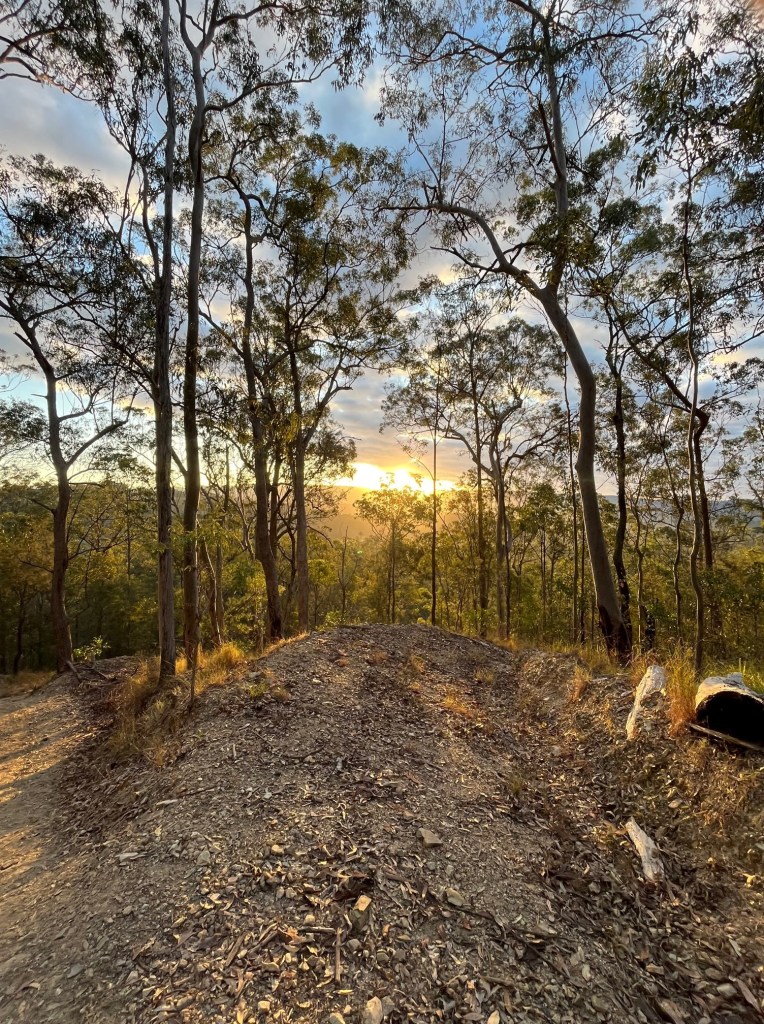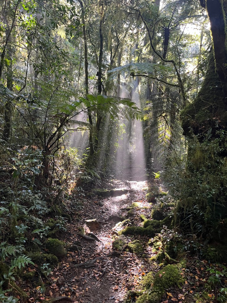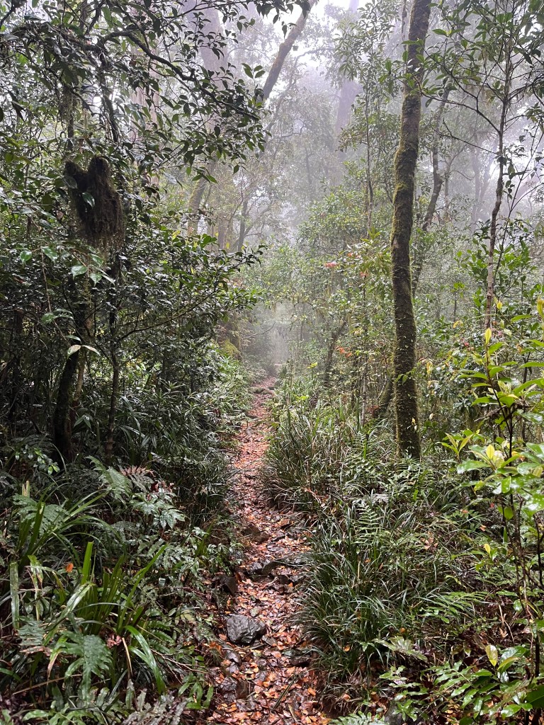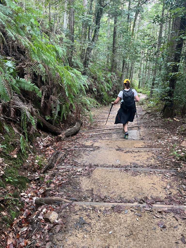 The temperature was cool, but not cold. I had on a long sleeved merino and a sleeveless puffer, and heading uphill I was starting to feel quite warm. Around the 3.5km mark I took a right hand turn and had an orchard on my left, and a bluebell forest on my right. Stunning.