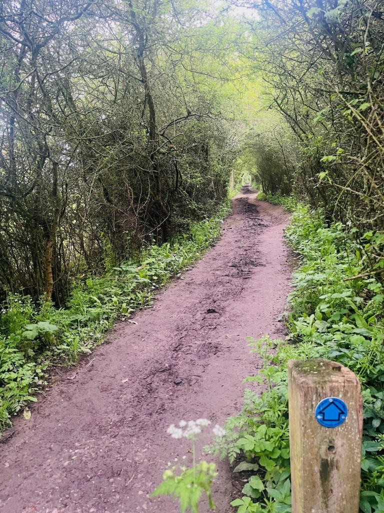 This is what I craved, beautiful English countryside trails that ran through rolling fields with a smattering of happy woolly sheep. The trail was very well used, with an equal mix of horse and human prints. Oh. And doggos. I encountered a few during my hike who were having the best day ever! I even had an intimate experience with a very exuberant Dalmatian who left an indelible imprint on me….!